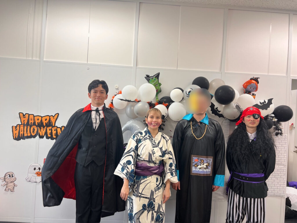 を行います。中高生のみんなだけ頑張るのではなく、僕自身もワークシートに挑戦し、みんなと一緒にコミットさせていただきます!(※写真はハロウィンの様子。左が私です。みんなと楽しいことをするのが好きです!)
