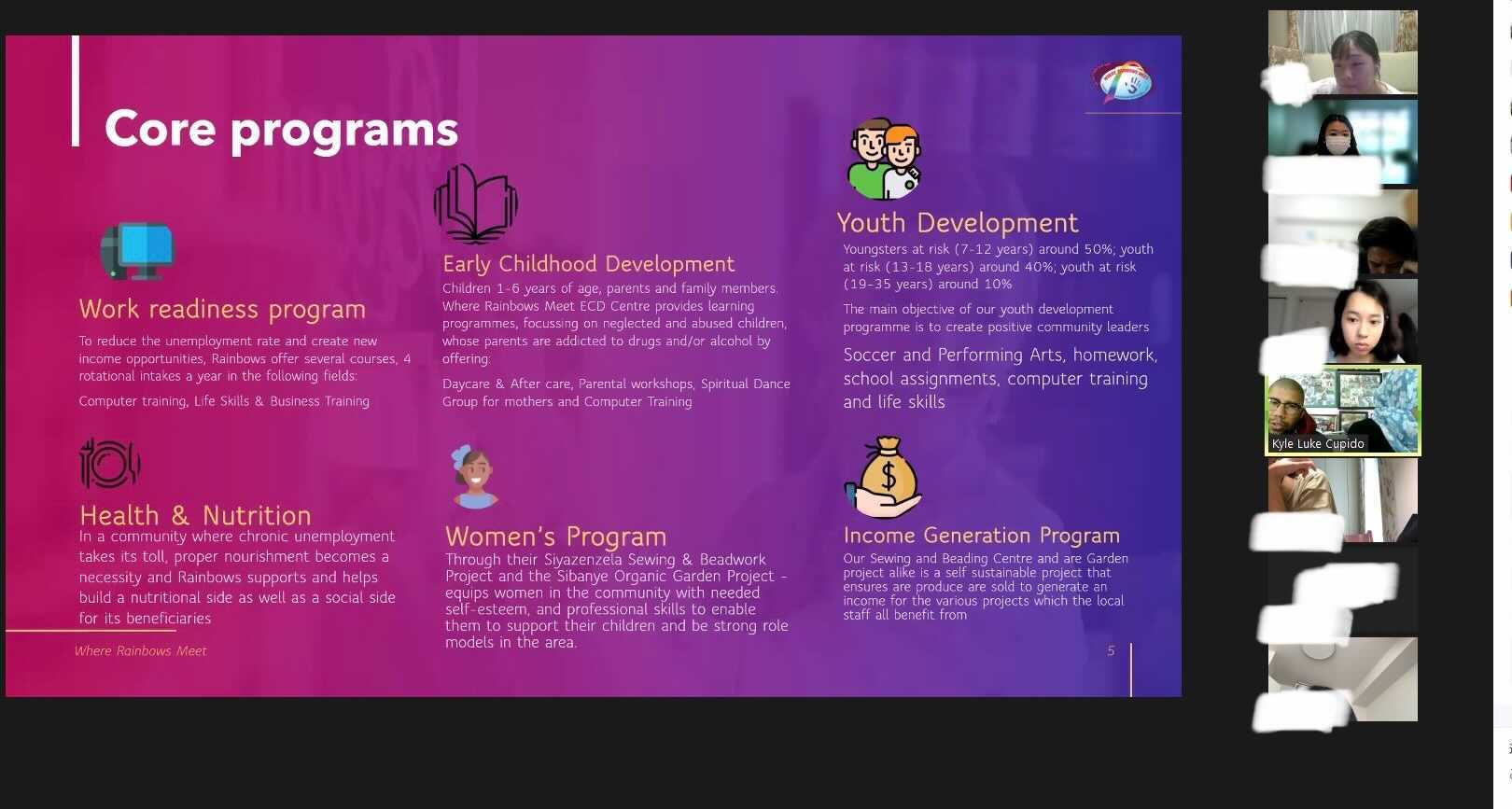 3日目には、南アフリカケープタウンで活動するNPO法人Where Rainbows Meetの代表の方々をお招きしてワークショップを行いました。(写真は彼らの活動の一部です)