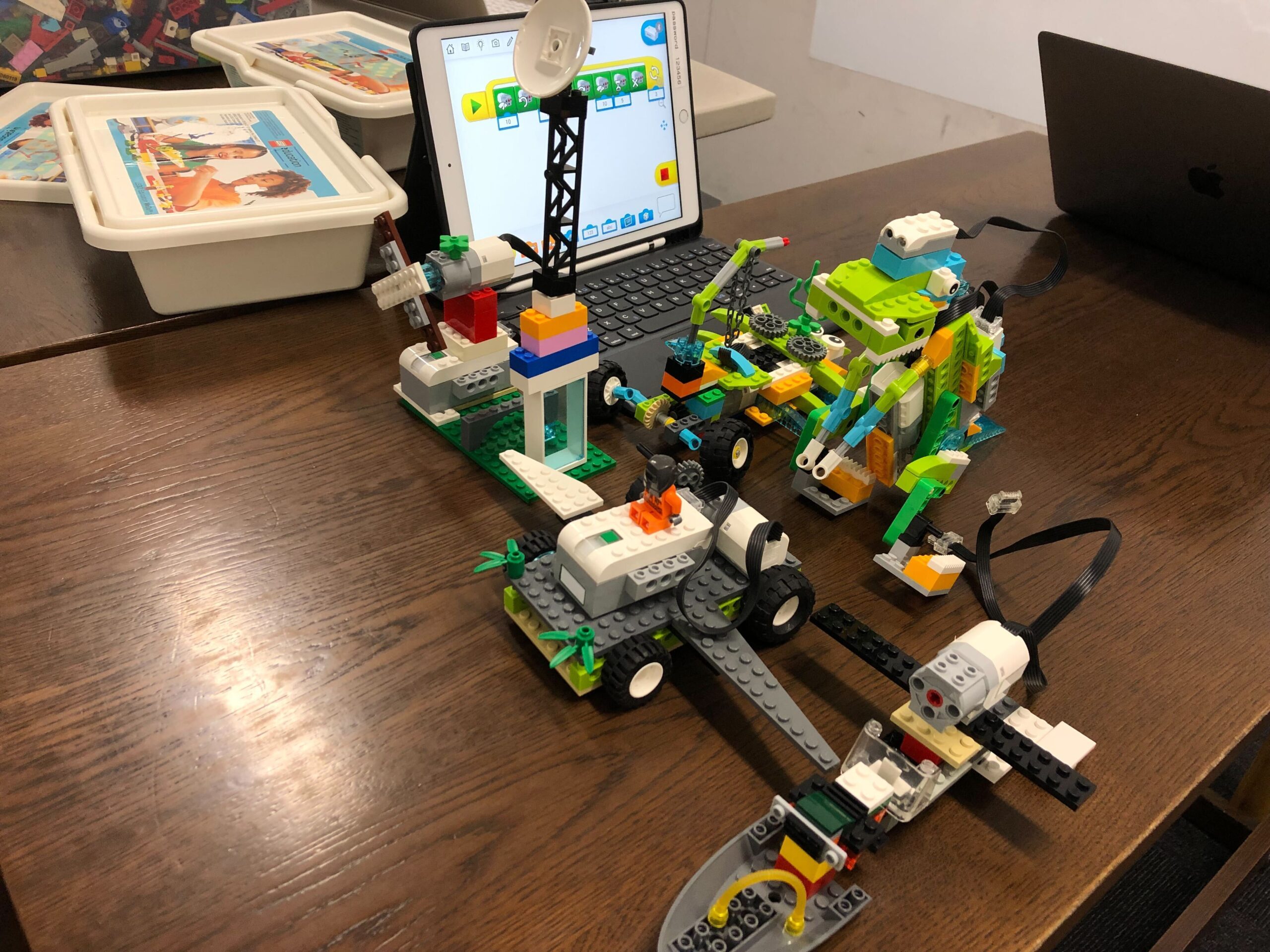 イベントの初めに、レゴがプログラミングで動くところを見てもらいました。生徒さんたち皆、動くレゴを見て大興奮でした。