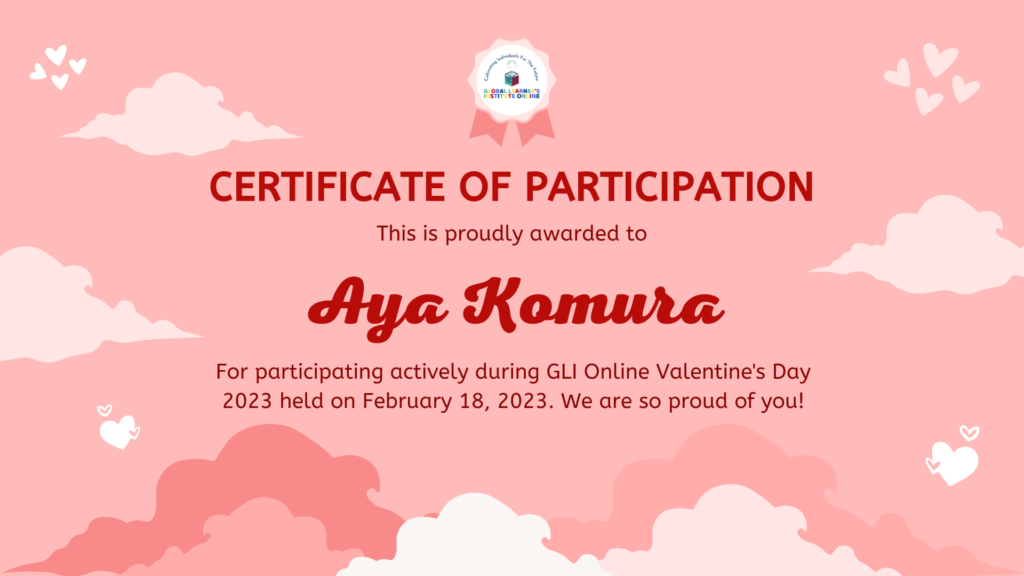 「Certification」(参加証書)の授与があります。