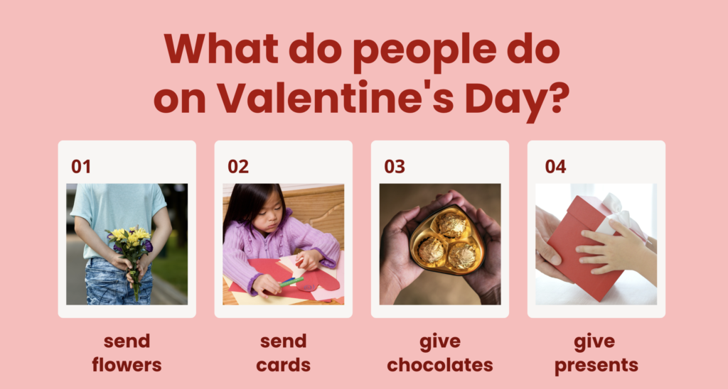 バレンタインの歴史、他の国での過ごし方などのトリビアを勉強したあと、グループに分かれて