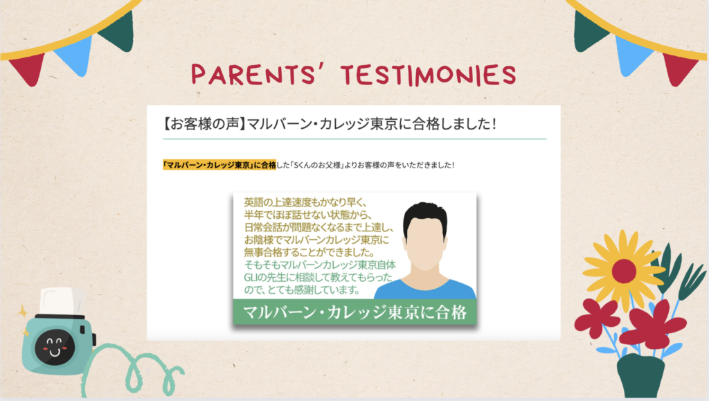 実際の生徒さんたちの成功ストーリーをご紹介!映像やインタビューで彼らの声を聞いてみましょう。