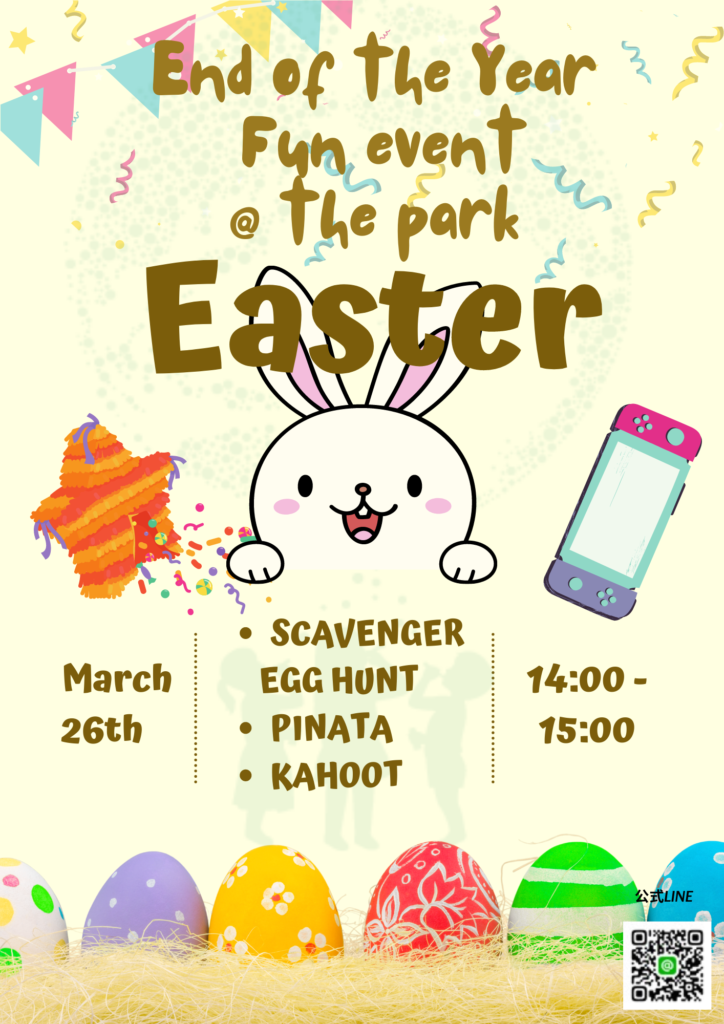 広尾校では、3月26日(日)の14:00~15:00に、”イースターホリデーとコラボ”した年度末最後の「Fun Event」を開催します!