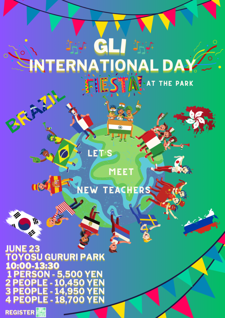 そんなGLI講師ファミリーも増えており、今年のインターナショナルデイでは、「韓国」「ブラジル」「香港」「ロシア」の海外文化を体験していただきます。