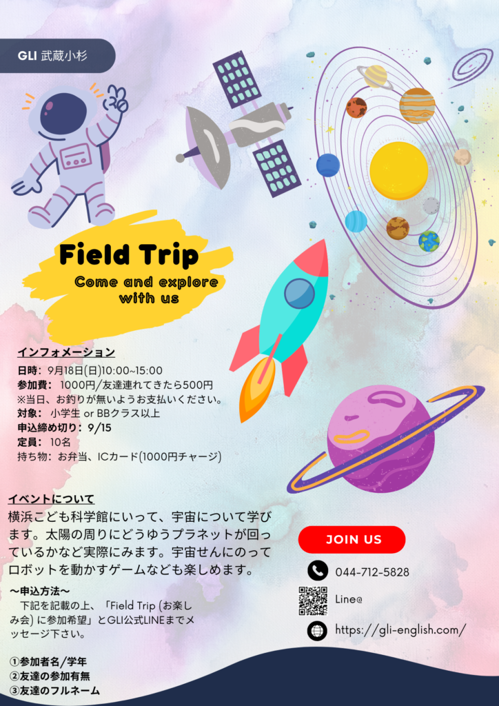 At GLI Musashi Kosugi SchoolFirst time to hold a full-scale event.The first is the "A" in the "A" column,Field Trip.to be held at the same time. The destination for this year's event isHAMAGIN SPACE SCIENCE CENTERIt is. (Photo: HP)