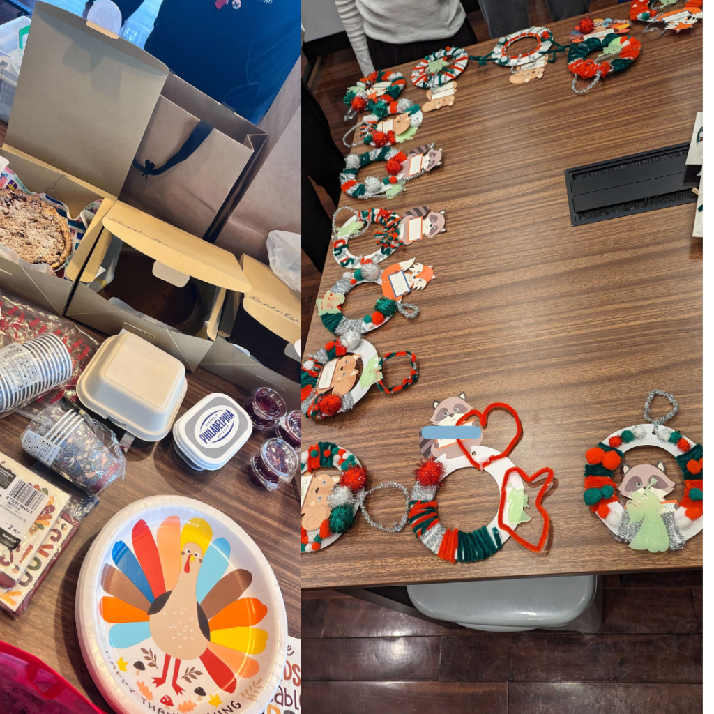 The turkey, pie, mashed potatoes, bread, and cranberry sauce was so delicious that the students lolled around until they were full. Some of the kids even took the pies home to share with their families.