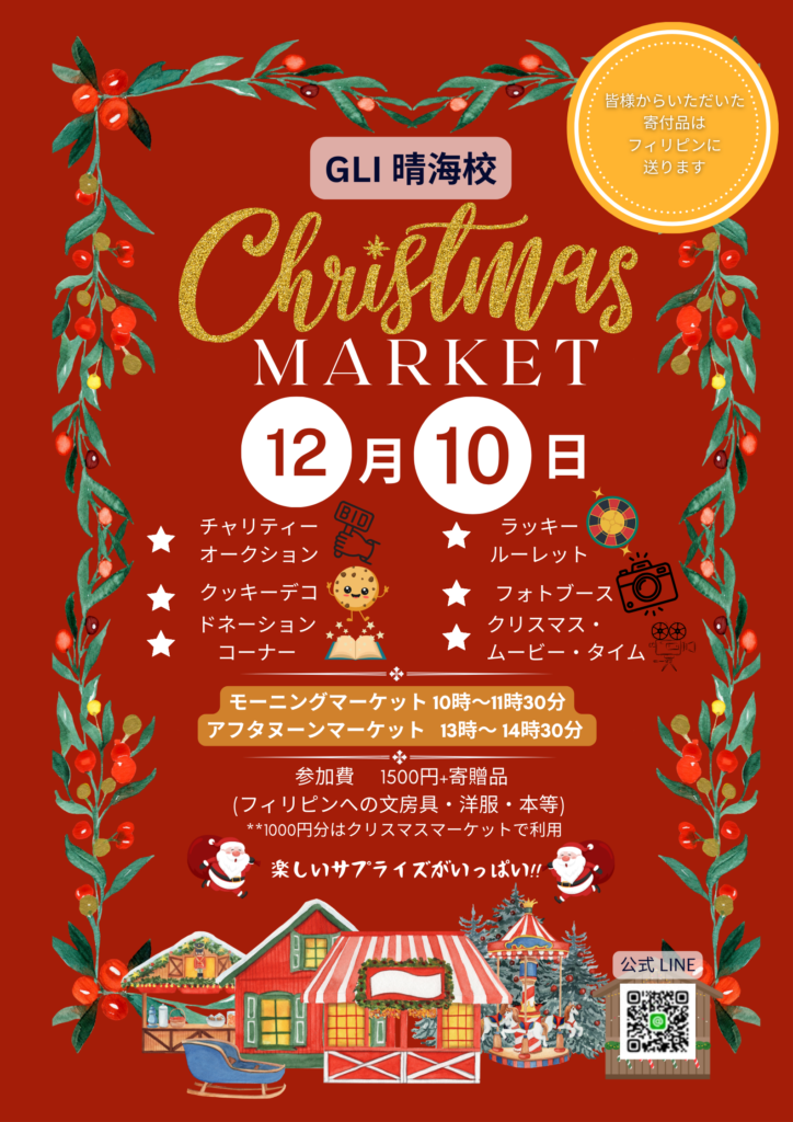 If you would like to participate in this year's GLI Harumi School Christmas Market, click on the "GLI Official LINE" button below,."Harumi School Christmas MarketMessage from "ThePlease send us a
