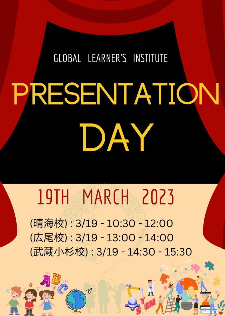 We hope that both internal and external students will enjoy the event and can feel and imagine the growth of their children.GLI's Presentation Day."Please come to the