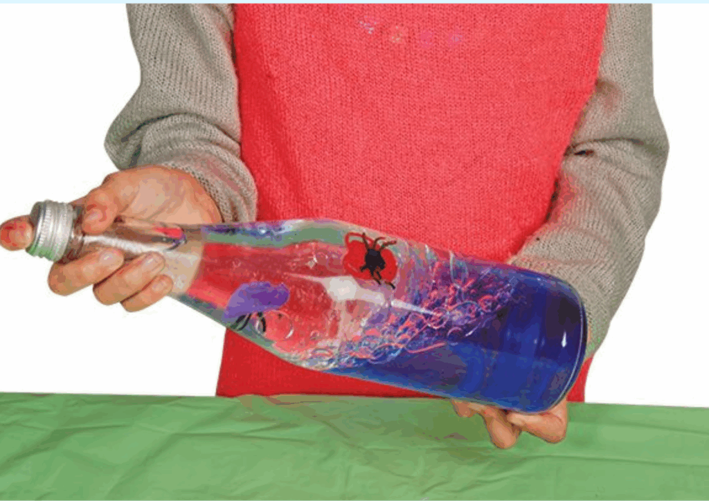 海外インターン生(Teacher Yali)をゲストに、今回製作する「Ocean sensory bottle(=海のキラキラボトル)」の実演・解説を行います。この実演を通じて、段階的に「oil」「glitter」などのワードについて学んでいきます。