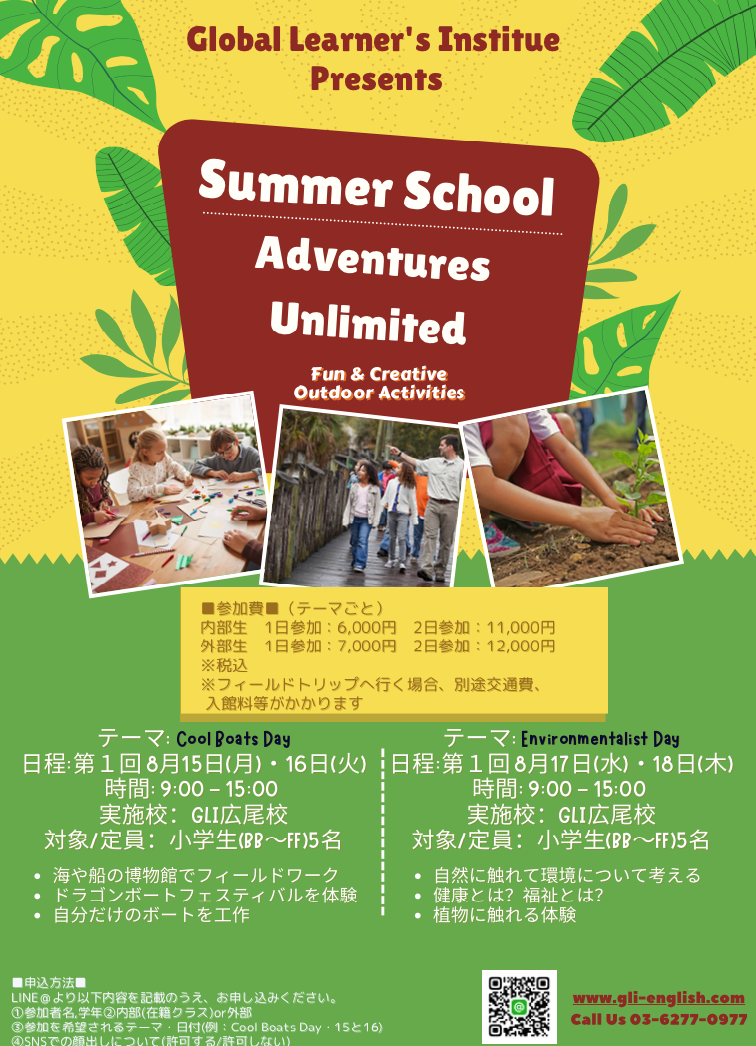 英語の学びだけにとどまらないGLIのサマースクールを、ぜひ体験しにきてください!