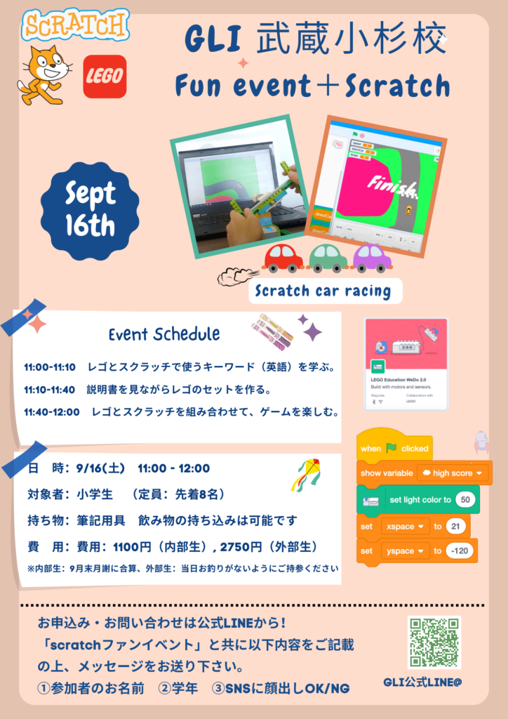 무사시코스기교 인기 이벤트'Scratch Fun Event(스크래치 펀 이벤트)'이 있습니다,'LEGO and Scratch fun event'로 '9월' 개최됩니다!