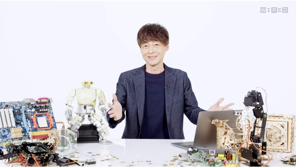 福島原発で作業をしているロボットは古田さんが開発したものですし、過去にも世界で初めて人工知能を搭載したサッカーをするロボット와,バック転するロボット...。