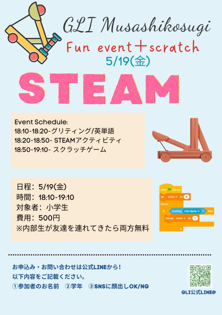 이번 행사에서는'STEAM and scratch'가 주제입니다. 그런 STEAM에서도'Engineering(엔지니어링)'에 초점을 맞춘 활동을 진행합니다.