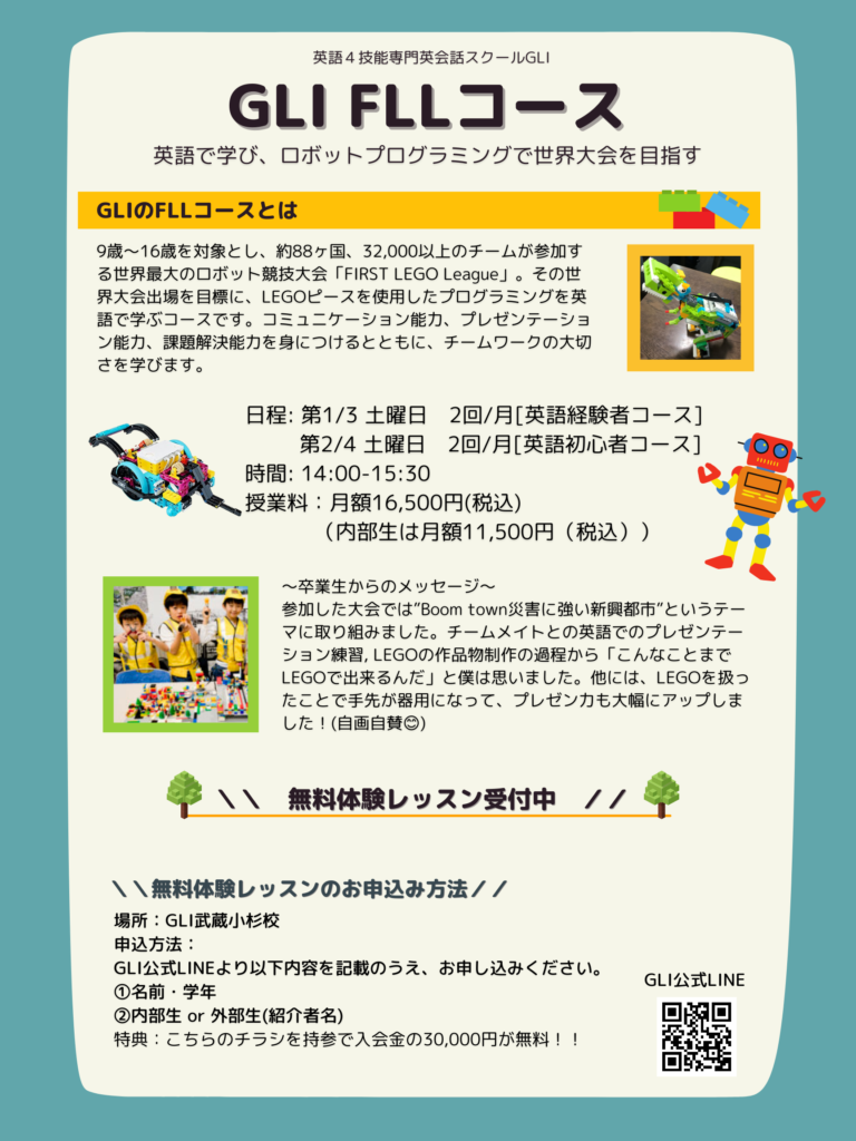 이번에,영어로 배우는, 세계대회 출전을 목표로 하는 본격적인 프로그래밍 코스 '로봇 프로그래밍 코스(=FLL 코스)'가매주 개강가 되었습니다!