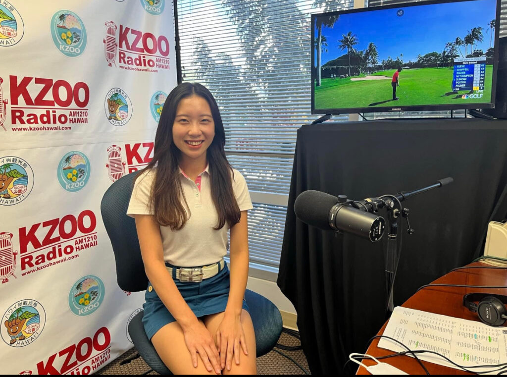 照片中是一位来自夏威夷的大学生,他将担任我们的当地导游。Moana Nakayama.是。既打高尔夫又学习的半职业高尔夫球手!