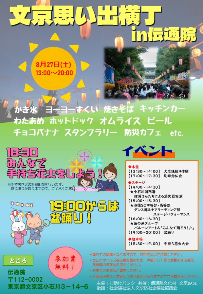 8 月 27 日星期日,东京文京区。文京回忆小巷节日活动名为(下面的海报是去年的)。