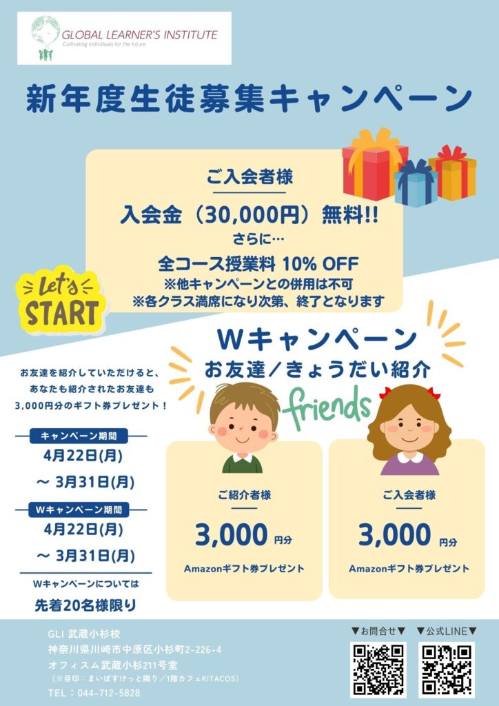 如果您能将 GLI 介绍给我们,我们将非常高兴!(本推荐活动仅限武藏小杉学校)。