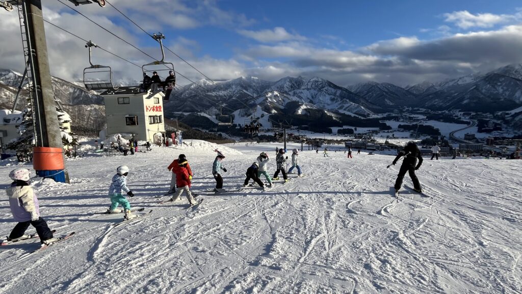 その後はスキーウェアに着替えて、約5時間たっぷり「オールイングリッシュのスキーレッスン」行います!